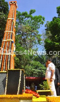Photo Caption : Ramanath Rai, Forest Minister pays tribute to the Martyrs, on the occasion of National Forest Martyrs Day, at Aranya Bhavan, in Bangalore on Thursday 11th September 2014