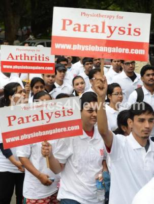 Photo Caption : Volunteers of Bangalore Physical Therapists Network partake in walkathon to create awareness on Physical Therapy, on the occasion of World Physical Therapy Day, at Cubbon Park, in Bangalore on Sunday 14th September 2014