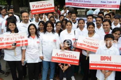Volunteers of Bangalore Physical Therapists Network partake in walkathon to create awareness on Physical Therapy, on the occasion of World Physical Therapy Day, at Cubbon Park, in Bangalore on Sunday 14th September 2014