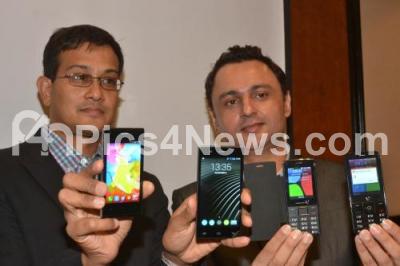 Photo Caption : Jerold Pereira, CEO, Videocon Mobile Phones with Vivek Kapoor, Business Head, Videocon Mobile Phones seen launching the Infinium Smartphone Range of Videocon Mobiles, at Taj Vivanta, in Bangalore on Tuesday 16th September 2014