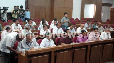 Photo Caption : Head of Departments and officials of BBMP seen during the Review Meeting on their performance and working, at Conference Hall, Vikas Soudha, in Bangalore on Thursday 18th September 2014