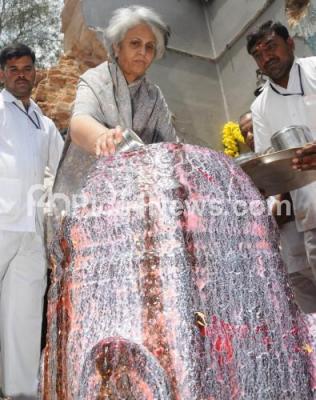 Event Description : Pramoda Devi Wadiyar, wife of Scion of the Mysore Royal Family late Srikanta Datta Narasimharaja Wadiyar, offered puja at Kote Maramma Temple adjoining the Amba Vilas Palace, after the tragic incident which killed two women and injures many, in Mysore on Friday 19th September 2014