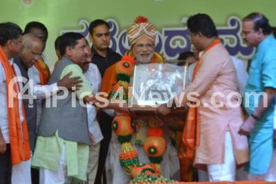 Photo Caption : Prime Minister Narendra Modi being felicitated by BJP Leaders R Ashok, DV Sadananda Gowda, Ananth Kumar, Prahlad Joshi, Jagadish Shettar and others, during the Reception by State BJP, at HAL Airport, in Bangalore on Tuesday 23rd September 2014