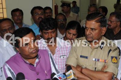 Photo Caption : Shivarame Gowda, Chief of Private Schools Administration with MN Reddi, Police Commissioner briefing media on the guidelines for schools and colleges for students safety, at Police Commissioner Office, in Bangalore on Thursday 25th September 2014
