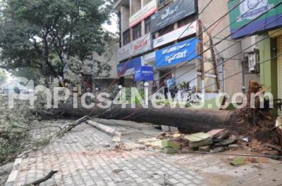 Photo Caption : Huge Tree fell disrupting Traffic and Electricity after the midnights heavy rain showers, at Double Road, in Bangalore on Friday 26th September 2014