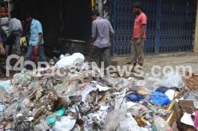 Dumped garbage causing unbearable stink after the Midnight showers, at Avenue Road, in Bangalore on Friday 26th September 2014