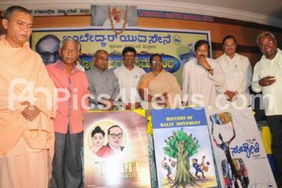 Event Description : Veerabhadra Chennamalla Swamiji with Motamma, MLCV Munivenkatappa, HSM Prakash and others seen releasing various Dalit books, at Gandhi Bhavan, in Bangalore on Saturday 27th September 2014