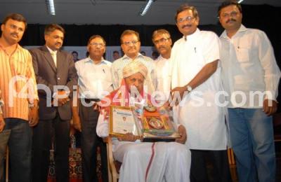 Photo Caption : B Boregowda being felicitated by Sarvagna Award from RK Nalloor Prasad, T thimma Gowda, Dr Subramnyeshwar Rao, HP Sadashiva, YG Nagaraj and others, during the Sarvagna Award Ceremony, organized by Akhila Bharata Sarvagna Vedike, at Nayana Auditroium, in Bangalore on Monday 29th September 2014