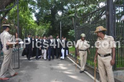 Photo Caption : Tamil Nadu Lawyers seen for the Jayalalita Disproportionate Assets Case, at Karnataka High Court, in Bangalore on Wednesday 1st October 2014