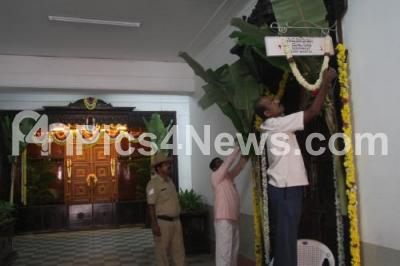 Photo Caption : Decorations going on for Ayudha Pooja Celebrations, at Vidhana Soudha, in Bangalore on Wednesday 1st October 2014