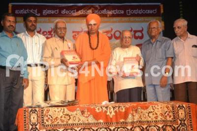 Event Description : Shri Shivarudra Mahaswamy with Prof G Venkatasubbaiah, Kannada Lexicographer, Pandit BS Venkateshmurthy and others seen releasing the Vachana Pada Sampada Books in various languages, at Nayana Auditorium, in Bangalore on Saturday 11th October 2014
