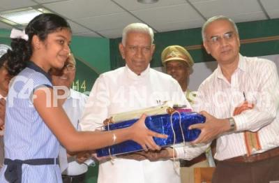 Vajubhai Rudabhai Vala, Governor with KG Kumar, Director, VITM with GS Rautela, Director General, National Council of Science Museums seen distributing prizes, during the National Science Seminar on Innovations in Agriculture for a Sustainable Future, Prospects and Concerns, at Visvesvaraya Industrial and Technological Museum, in Bangalore on Saturday 11th October 2014
