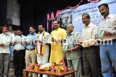 Photo Caption : TA Narayana Gowda with NR Vishu Kumar, Writers Dr Nallur Prasad, Dr Hampa Nagarajiah and others seen releasing Bili Sahebana Bharatha authored by Dr N Jagadish Koppa, at Kannada Sahitya Parishath, in Bangalore on Saturday 11th October 2014