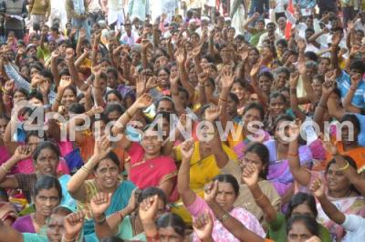 Photo Caption : Members of Karnataka State Boarding Schools and Hostel Workers Union protesting to fulfill their various demands, at Freedom Park, in Bangalore on Monday 13th October 2014