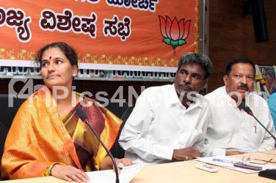 Photo Caption : Mayor Shanta Kumari with Kota Srinivas Poojary, Former Minister seen during the special meeting of BJP backward classes morcha at BJP Office, in Bangalore on Monday 20th October 2014