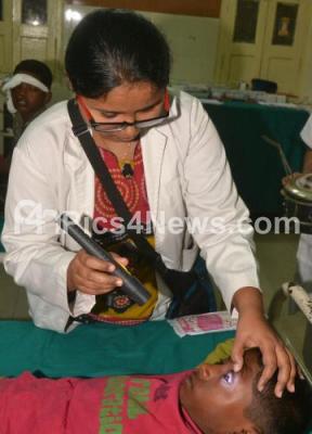 Kids Suffer Eye injuries while bursting crackers celebrating Diwali Festival, getting their treatment, at Minto Hospital, in Bangalore on Thursday 23rd October 2014