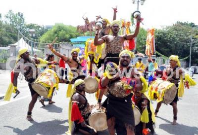 Photo Caption : Cultural Artists perform during the Vijayotsava Programme, organized by BBMP, at Town Hall, in Bangalore on Thursday 23rd October 2014