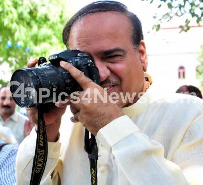 Photo Caption : Union Minister Anantkumar clicking snaps, during Vijayotsava programme, organized by BBMP at Town Hall, in Bangalore on Thursday 23rd October 2014