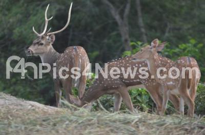 Photo Caption : Spotted Deer and Deers grazing at Bannerghatta National Park, in Bangalore on Saturday 25th October 2014