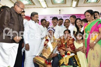 Photo Caption : Dr L Byrappa, President, Government Employees Association being felicitated by Chief Minister K Siddaramaiah, Power Minister DK Shivakumar, MLC HM Revanna and others, at Banquet Hall, Vidhana Soudha, in Bangalore on Tuesday 28th October 2014