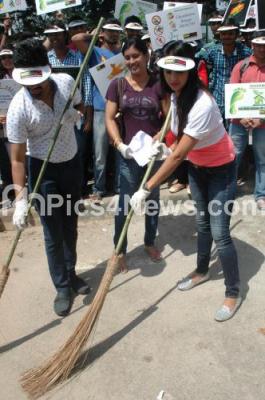 Photo Caption : Actress Sanjana participates in Swachh Bharat Abhiyan, organized by MAAC, at Cantonment Railway Station Road, in Bangalore on Wednesday 29th October 2014
