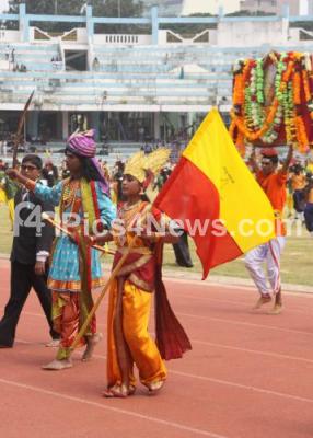 Photo Caption : School Students performing Cultural Programmes, celebrating Kannada Rajyotsava 2014, at Kanteerva Stadium, in Bengaluru on Saturday 1st November 2014