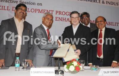 Photo Caption : S Sampathraman, President, FKCCI ecxchnging MoU with Dilip Chenoy, CEO and MD, National Skill Development Corporation, during the Interactive Session on Skill Development Programs and Enhancing Employability Quotient, at Hotel Le Meridien, in Bengaluru on Monday 3rd November 2014