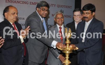 Photo Caption : S Sampathraman, President, FKCCI with Ramkumar Seshu, Chairman, Skill, Education and HR Committee, FKCCI, Dilip Chenoy, CEO and MD , National Skill Development Corporation seen lighting lamp to inaugurate the Interactive Session on Skill Development Programs and Enhancing Employability Quotient, at Hotel Le Meridien, in Bengaluru on Monday 3rd November 2014