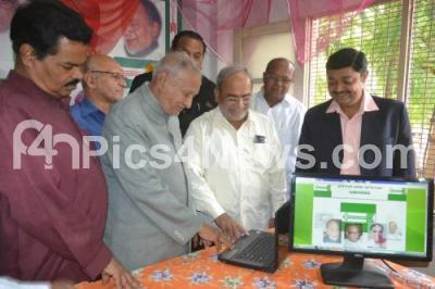 Photo Caption : Dr MP Nadagowda with MR Venkataswamy, Dodda Annaiah, S Ashwath Narayan, Syed Mahboob and others seen launching Janata Dal United website, at JDU Office, in Bengaluru on Monday 3rd November 2014