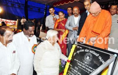 Photo Caption : Srimad Swami Harshanandaji Maharaj with Minister HK Patil, Former Mayor Katte Satya and others at the Golden jubilee celebrations of Sree Thyagaraja Co operative Bank Ltd at Thyagarajanagar, in Bengaluru on Sunday 9th November 2014