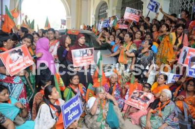 Photo Caption : BJP Mahila Morcha Protest condemning rampant Atrocities against Women and Children, at DCs Office, in Mysuru on Wednesday 12th November 2014