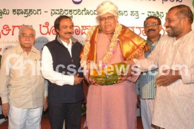 Photo Caption : HS Shivaprakash being felicitated by Jnanpith Awardee Dr Chandrashekhar Kambar, Dr BL Shankar and others during the Maatina Baladinda and Manteswamy Kathaprasanga Books Release Programme, at Chitrakala Parishath, in Bengaluru on Monday 17th November 2014