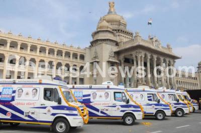 Photo Caption : 198 Aarogya Kavacha Ambulances added at Vidhana Soudha, in Bengaluru on Tuesday 25th November 2014