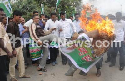 Photo Caption : JDs Youth Wing burning effigy and protesting against Power Minister DK Shivakumar, in Bengaluru on Saturday 29th November 2014