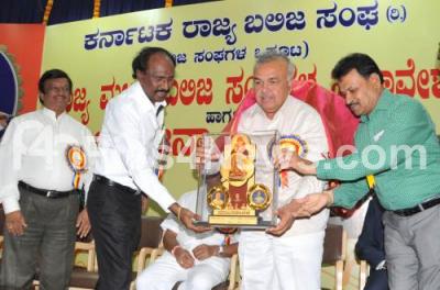 Photo Caption : Ramalinga Reddy, Bangalore City Incharge being felicitated by Venugopal, President, Ravi Naidu and Veerandera Kumar, during the State Balija Sangha Conference, organized by Karnataka State Balija Association, at NGO Hall, Cubbon Park, in Bengaluru on Sunday 30th November 2014