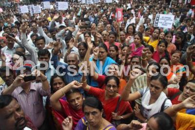 Event Description : Members of United Forum of bank Unions call on for Bank Strike in pursuance of their demand for immediate wage revision settlement at State Bank of Mysore, in Bengaluru on Tuesday 2nd December 2014