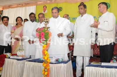 Photo Caption : Chief Minister K Siddaramaiah with Ministers V Sreenivas Prasad, Umashree, H Anjaneya and Krishna Byre Gowda lighting lamp to inaugurate Agriculture Training Centre, at Nagena Halli, in Mysuru on Tuesday 2nd December 2014