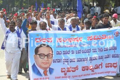 Event Description : Members of Dalit Sangharsha Samithi seen with flower partake in a rally to mark 58th Death Anniversary of Dr BR Ambedkar, from SBM Circle, in Bengaluru on Saturday 6th December 2014