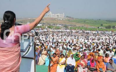Photo Caption : Shoba Karandlaje addressing the Sugarcane Farmers against State Government to fulfill their various demands in front of Suvarna Soudha, in Belagavi on Tuesday 9th December 2014