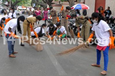 Event Description : NCC Cadets and others seen cleaning streets, participating in Swach Bharat Abhiyan, at Kormanagala, in Bengaluru on Thursday 11th December 2014