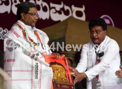 Photo Caption : K Siddaramaiah, Chief Minister being felicitated by Minister MB Patil and others, during the 12th All India Sharana Sahitya Sammelana, at Vijaypura on Friday 12th December 2014