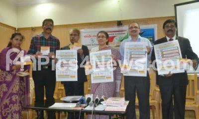Photo Caption : Dr Tejaswini Ananthkumar with Nair, former HAL chairman, Pradeep, Velu and Padmini releasing the Adamya Chetana Seva Utsav brochure and CD during the press conference on Adamya Chetana Seva Utsav, scheduled to be held during 31st Dec 2014 to 4th Jan 2015, the press conference was held at Press Club, in Bengaluru on Monday 15th December 2014