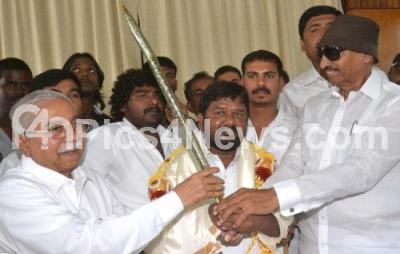 Photo Caption : 81st Kannada Sahitya Sammelana President Dr Siddalingaiah being felicitated by Jnanapeeta Awardee Dr Chandrashekar Kambar, Vatal Nagaraj and Pundalika Halambi, President, Kannada Sahitya Parishat, at a programm organized by Kannada Chaluvali Vatal Paksha, at Woodland Hotel, in Bengaluru on Sunday 21st December 2014