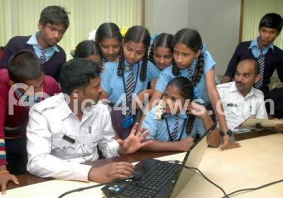 Photo Caption : Students of CMCA interacting with Traffic Police officers, during the 10th Year Traffic Police Day 2014 Celebration, at Traffic Management Centre, in Bengaluru on Tuesday 23rd December 2014