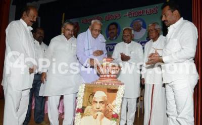 Photo Caption : Freedom Fighter HS Doreswamy with MLC Veeranna Mattikathi and others lighting lamp to inaugurate Kissan Day, on the occasion of Former Prime Minister Choudhary Charan Singh Birth Anniversary, at Kannada Sahitya Parishath, in Bengaluru on Tuesday 23rd December 2014