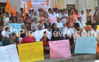 Event Description : Members of Vishwa Hindu Parishad protesting against Chief Minister K Siddaramaiah, at Town Hall, in Bengaluru on Wednesday 24th December 2014