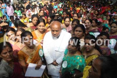 Photo Caption : HD Devegowda, Former Prime Minister of India seen with Womens wing, during the JDs State and City Womens Wing Conference, at JDs Office, in Bengaluru on Saturday 27th December 2014