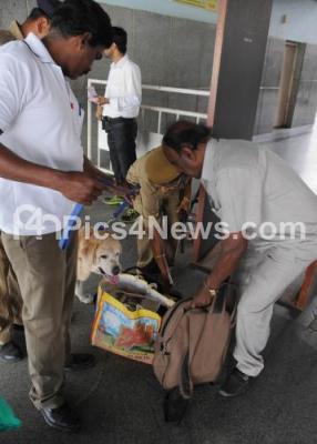 Photo Caption : Sniffer Dogs in Action and Tight Security deployed at City Railway Station, after Yesterdays IED Blast outside the Popular Coconut Groove Restaurant at Church Street, in Bengaluru on Monday 29th December 2014