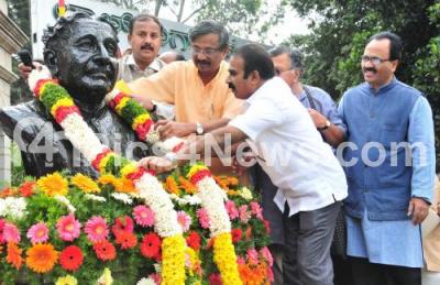 Photo Caption : Dr Nalloor Prasad with Dr Guddadahalli B Krishna, Ramanna KodihosahalliKC Jagannath Reddy, Anil Kumar, Sriramegowda and others garlanding National Poet Kuvempu, celebrating his 111th Birth Anniversay, at Lalbagh, in Bengaluru on Monday 29th December 2014