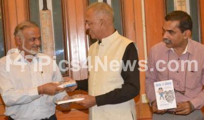Photo Caption : Brijesh Patil, Secretary, KSCA with Marakand Waigankar and others seen releasing Guts and Glory Book, at KSCA, in Bengaluru on Monday 29th December 2014